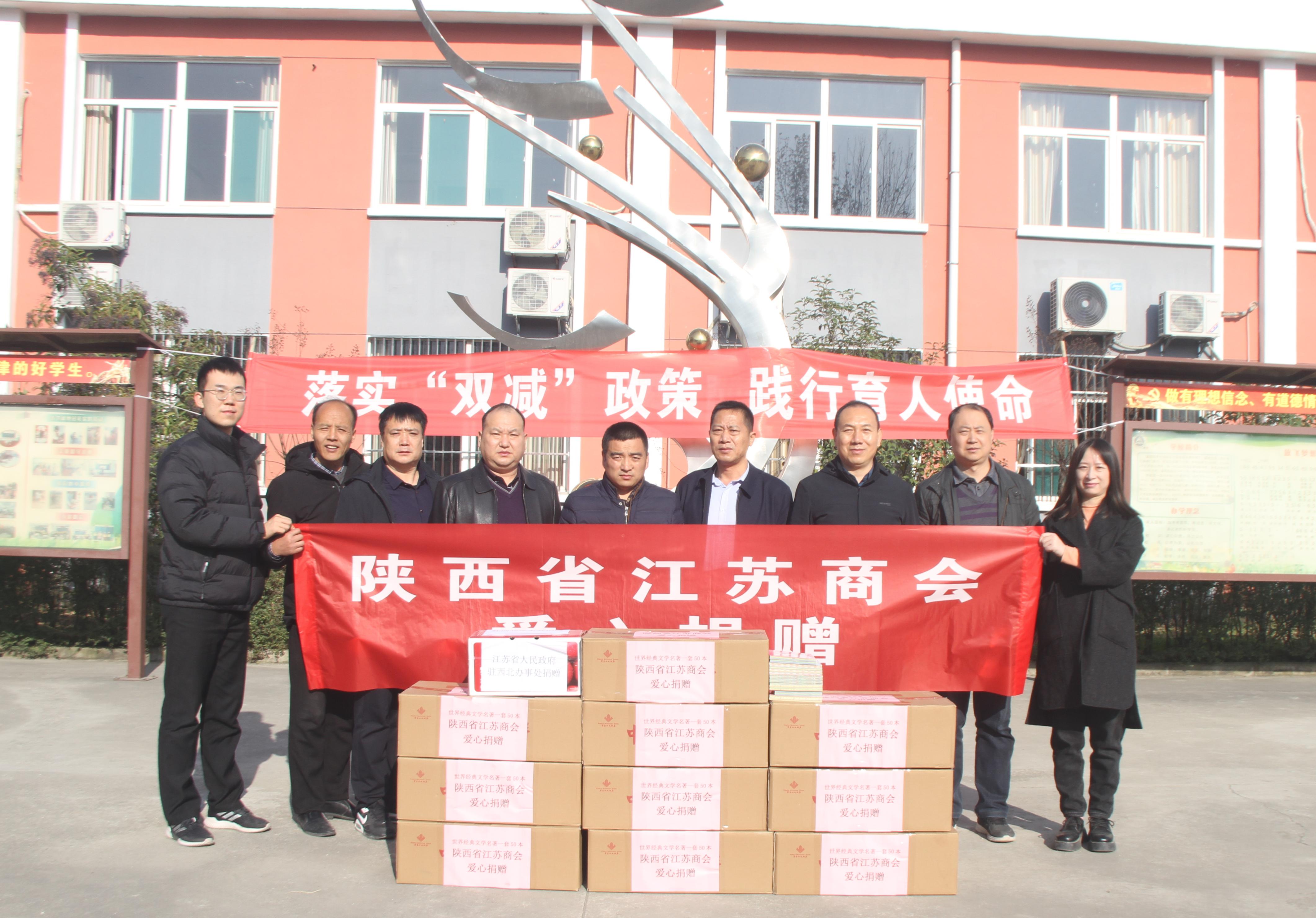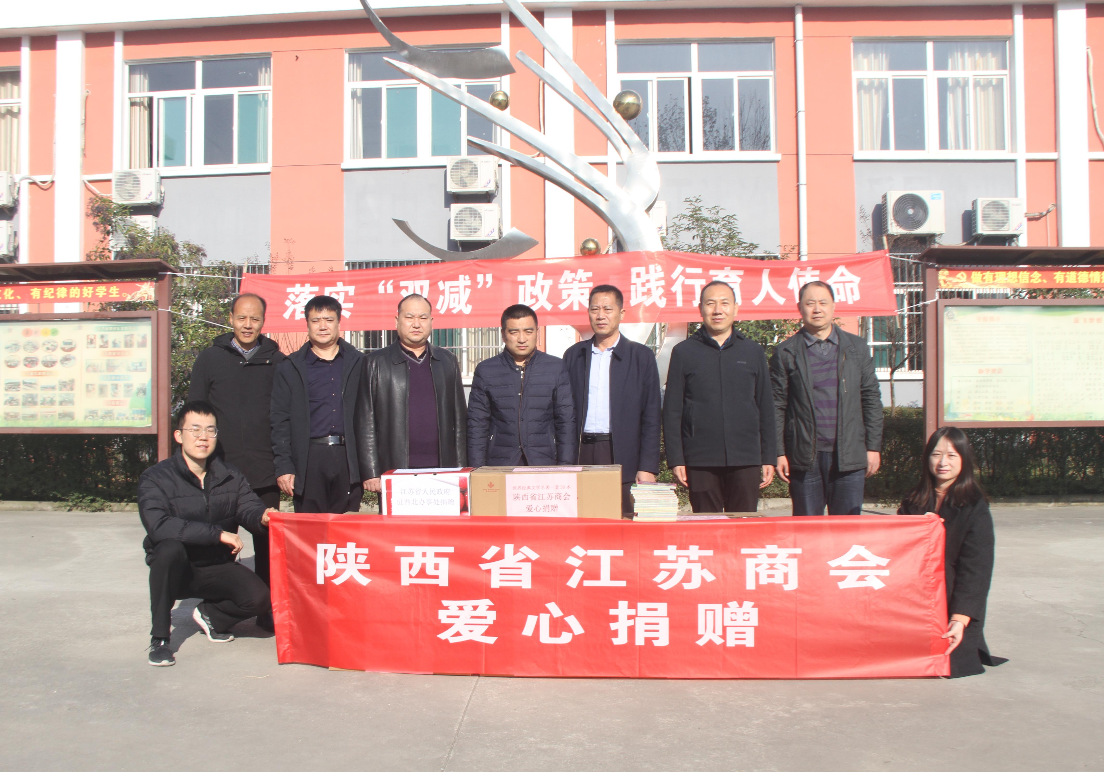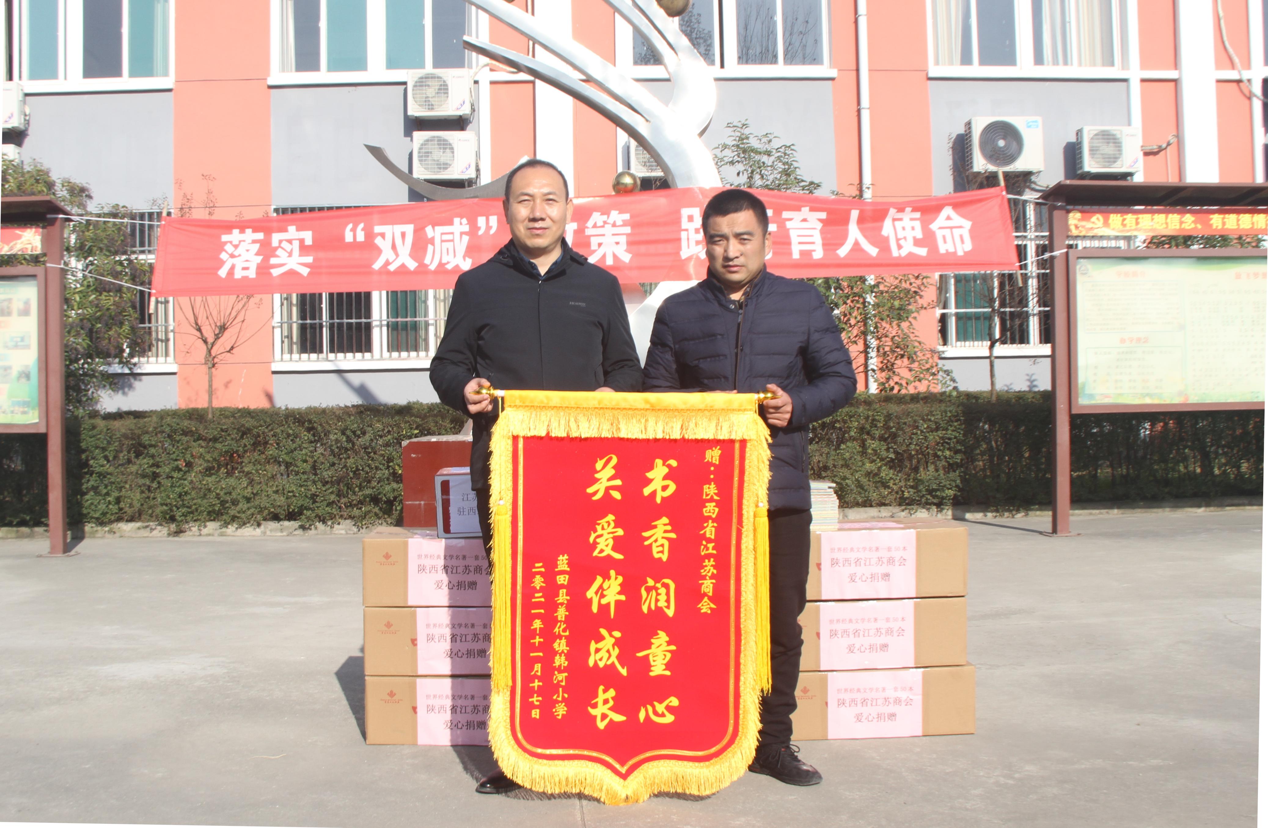 11月17日,江苏省人民政府驻西北办事处联合,前往蓝田县普化镇韩河小学开展“书香润童心,关爱伴成长”图书捐赠活动。此次活动共计捐赠500册《中小学新课标世界经典文学名著系列》和100册其他少儿读物。